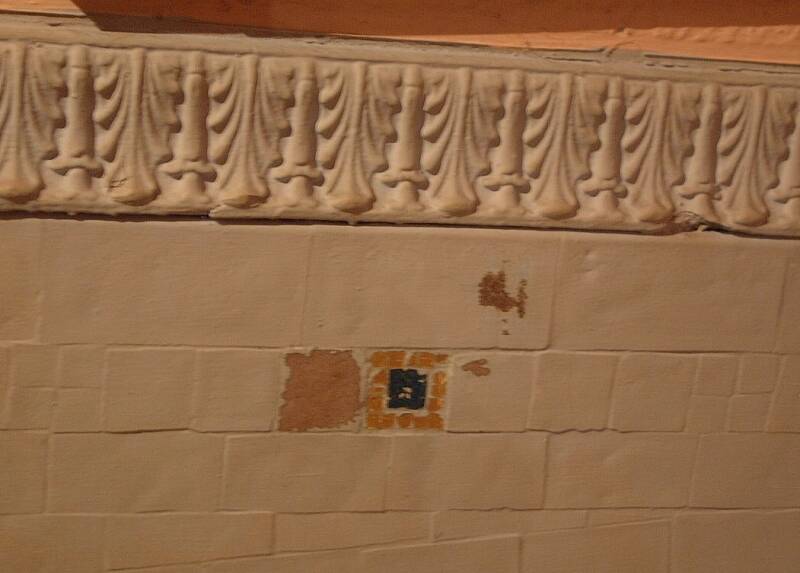 After scraping away layers of paint, the original 1928 Helio (Heliotrope) and blue tiles re-emerge, offering a glimpse into the cinema's vibrant past. These detailed tiles once adorned the lower walls, reflecting the era's taste for rich, decorative finishes. These tiles were topped with a detailed Acanthus leave plaster moulded dado finish.
